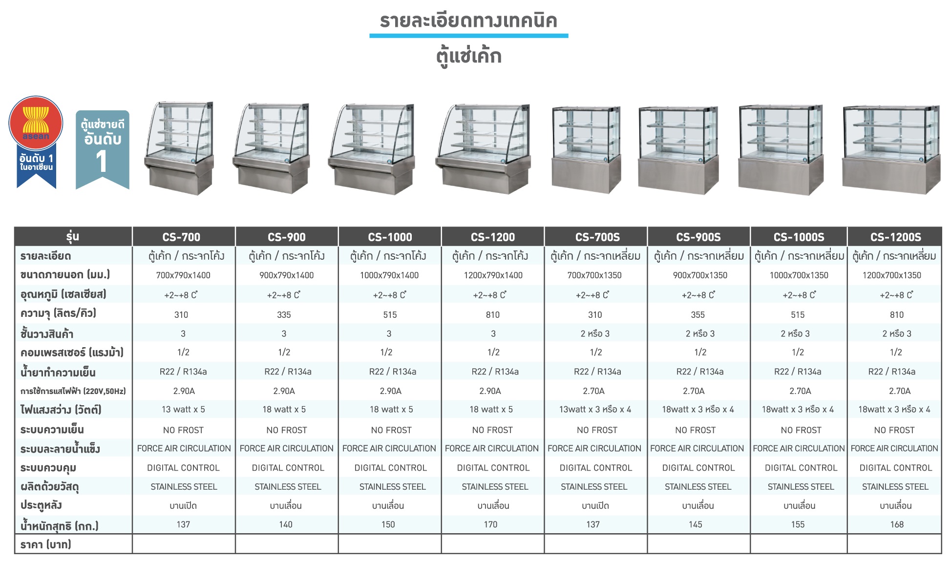 สินค้า ใน ตู้แช่เค้กทรงโค้ง ตู้แช่เค้กทรงเหลี่ยม ตู้โชว์เค้กเปิดหน้า ตู้โชว์สินค้ากระจก (11 ชนิด)